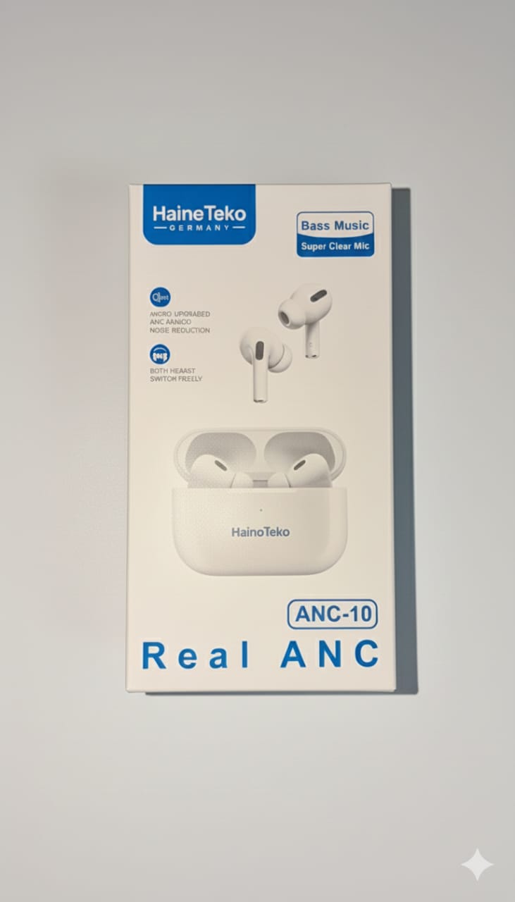 Product details of Haino Teko ANC-10 Wireless Earbuds Noice Cancellation Touch Sensor Best Sound Bass Bluetooth 5.0 With Free Silicone Case With Hook